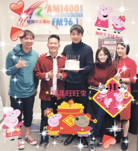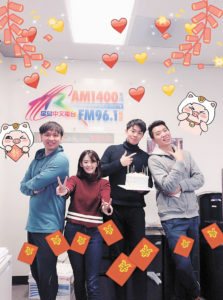 而在剛剛過去的一個星期,電台上上下下不單止忙碌著籌備不同的新年節目。大家也抽空為我們其中4位在這一個月內過生日的同事慶祝。當中包括有粵語台的主持人陳啟洋,國語台的主持古駿鳴,韓雨,曼琳,四位都非常開心可以一起慶生,過一個專屬水瓶座的生日。